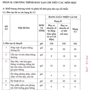 Học 1 – 2 buổi/ tuần. Học luật, biển báo, đạo đức người lái. Giải quyết toàn bộ 15 bộ đề thi sát hạch.